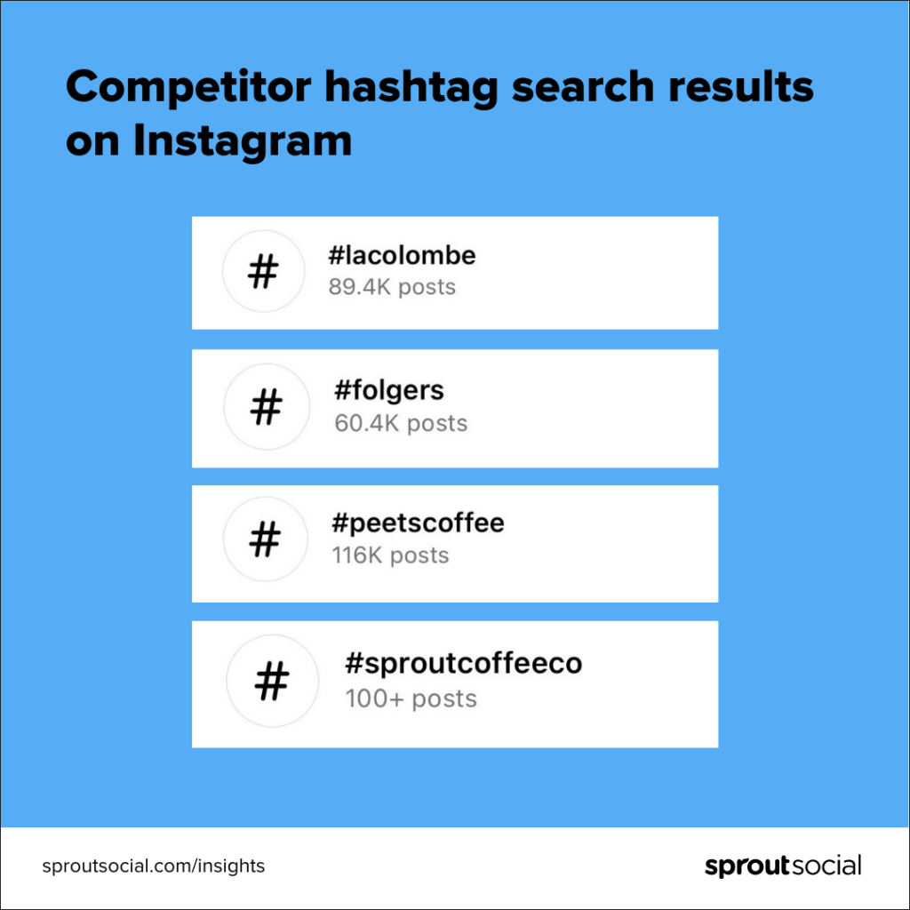 Your direct competitors on social are brands that sell the same products as you. Let’s use our fictional coffee company, Sprout Coffee, as an example: La Colombe, Peet’s Coffee, Caribou and local coffee shops are all direct competitors.